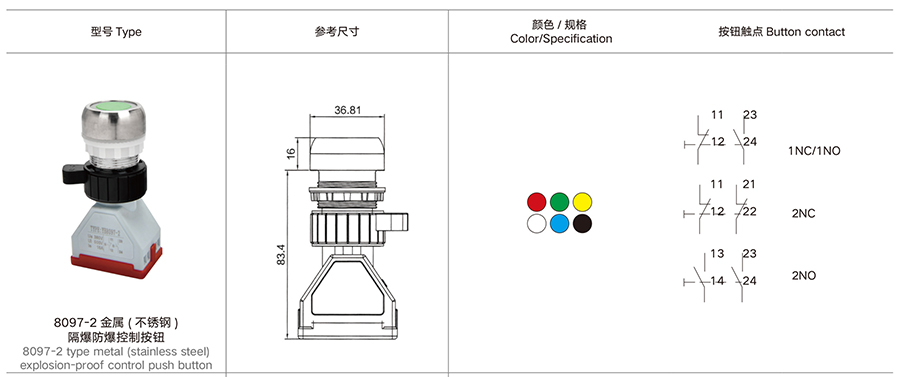 8097-2 金属 ( 不锈钢 )隔爆防爆控制按钮