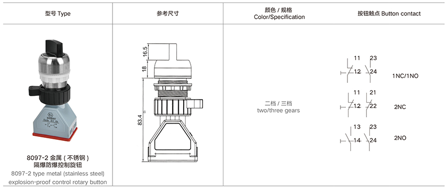 8097-2 金属 ( 不锈钢 )隔爆防爆控制按钮