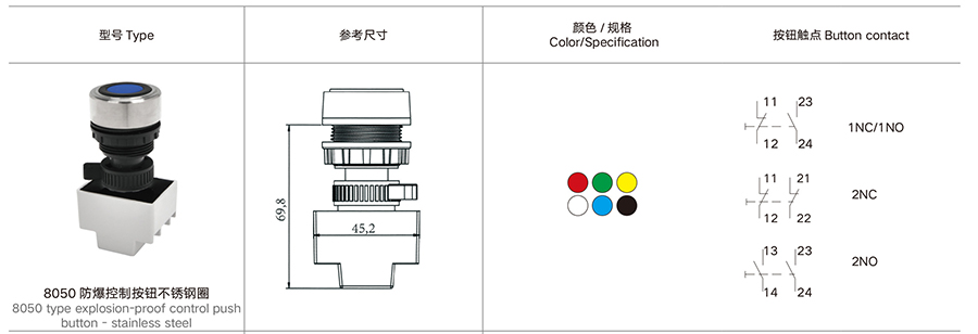 8050 防爆控制按钮不锈钢圈