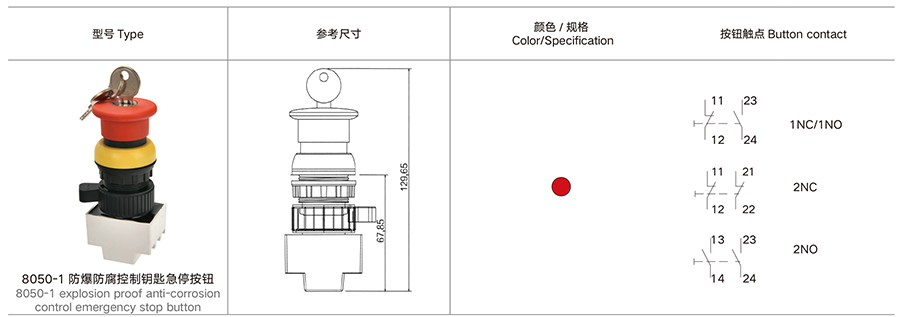当前位置:主页 > 产品展示 > 8050-1 防爆防腐控制钥匙急停按钮