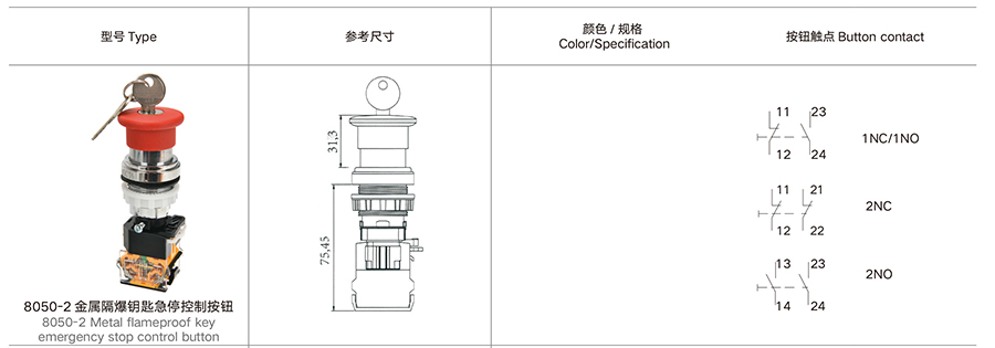 8050-2-2 金属 ( 不锈钢 ) 隔爆控制按钮