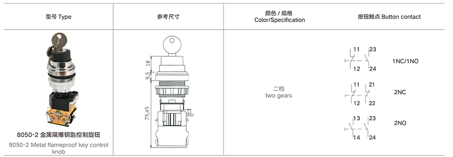 当前位置:主页 > 产品展示 > 8050-2 金属隔爆钥匙控制旋钮