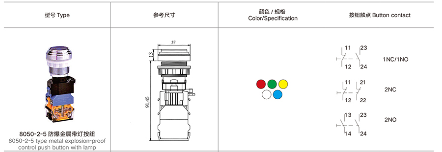 8050-2-5 防爆金属带灯按纽